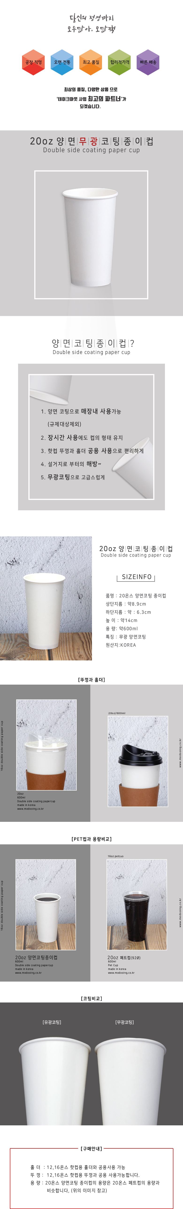 > 아이스겸용 종이컵 무광 양면코팅 20oz 1000개