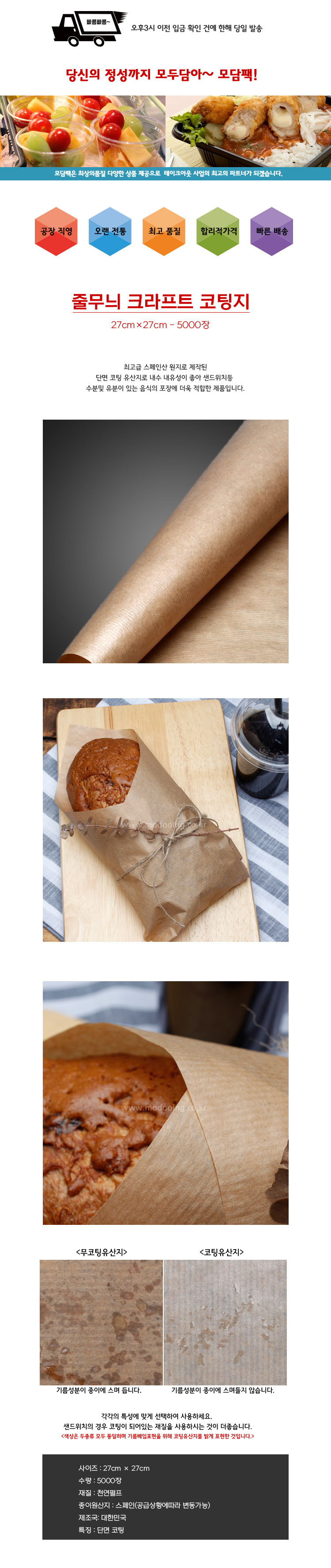 > 줄무늬 코팅 크라프트지 27×27 5000장
